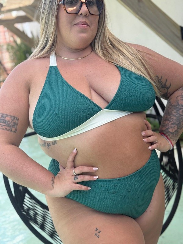 Corpiño corte triángulo Marilyn confeccionado en lycra texturada de Brasil con protección UV combinada con Lycra cremita (bajo busto y lazos para atar) Los breteles del cuello son anchos para sujetar bien y podes atarlos al cuello o a la tira de la espalda para sujetar más sin molestias.