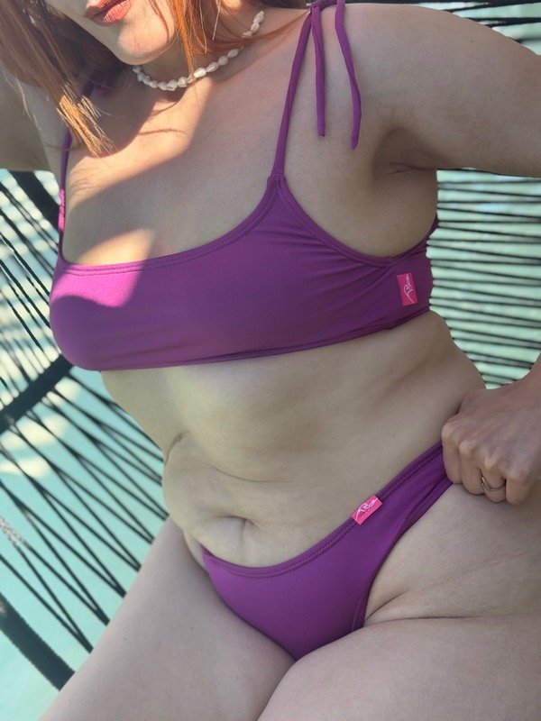 Corpiño confeccionado en lycra satinada con protección UV, sus breteles de tela para atar a los hombros son finitos tipo tirita. A su vez la espalda es entera y más angosta que la delantera. Podes regular el largo de los hombros atando a gusto y a tu medida.