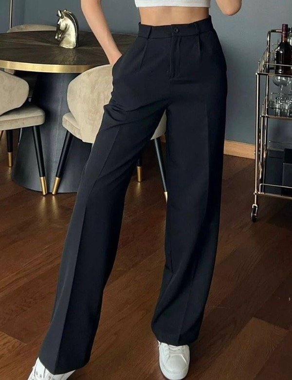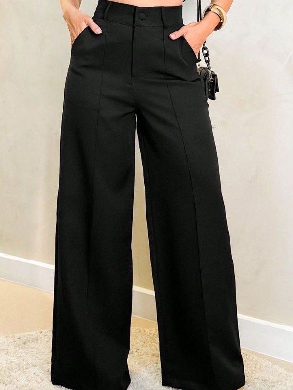 Pantalon de crep sastrero estilo recto/Wide leg (bien amplio en en la bota manga, generando una sensación de apertura y movimiento). Color negro. Tiene pinzas delanteras. Tiene bolsillos delanteros, presillas para cinto. Cierre y boton a tono. Tiene elástico interno en la parte de atrás para adaptarse mejor a tu cintura la Ideal para un evento si lo combinas con un top o remera arreglada, o con zapas y una básica para el día a día o ir a trabajar.
