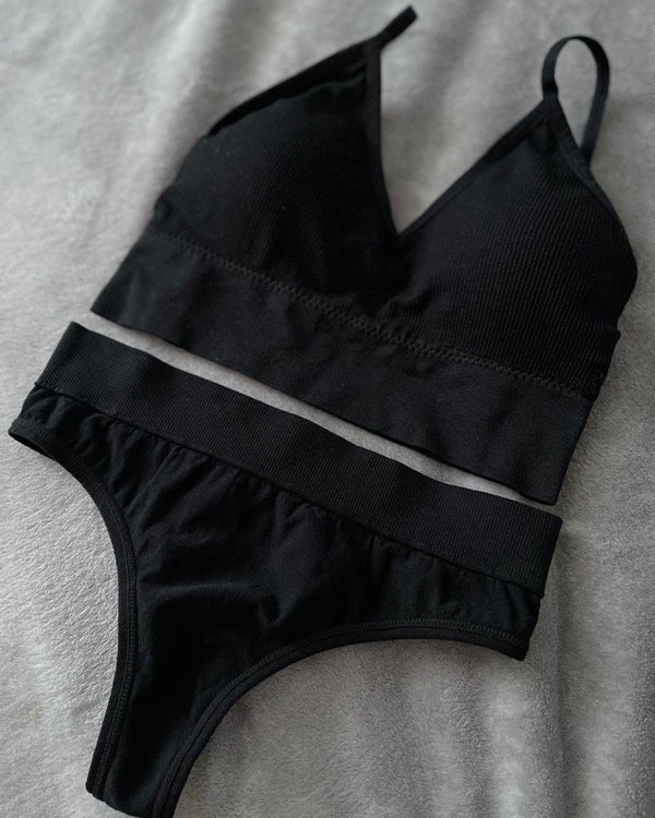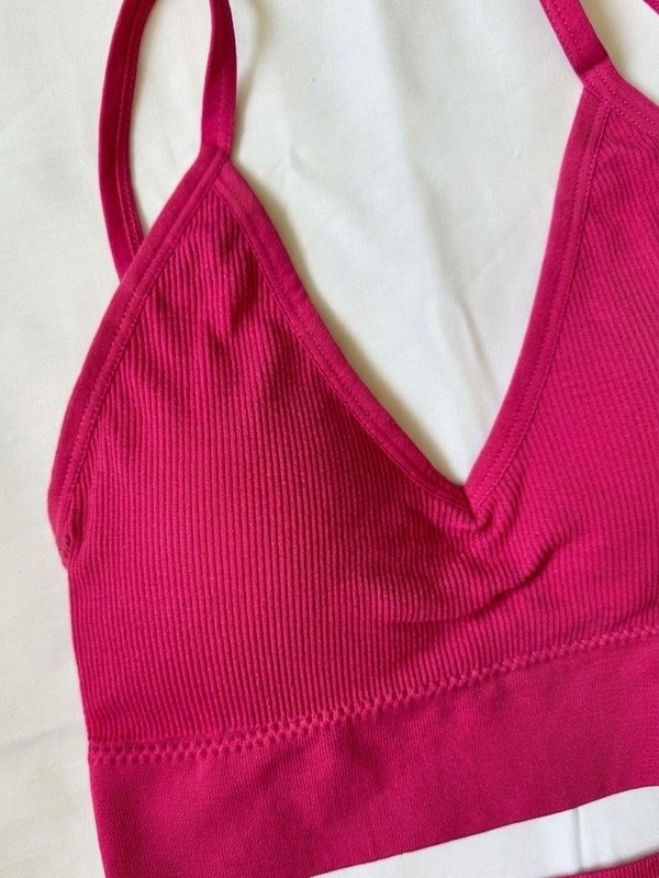 Conjunto seamless de top (los breteles son elásticos, no regulables) posee tazas desmontables y less tiro alto. La particularidad de este conjunto es que es súper elástico, se amolda al cuerpo sin marcar ni apretar y no se marca con la ropa. Ideal para estar cómoda todos los días!
