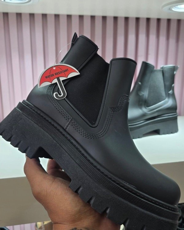 Botas clásicas de lluvia negras con Suela negra . caña corta (llegan hasta pasando el tobillo aprox ) Material: eco cuero impermeable. Tienen cambio por talle o modelo!