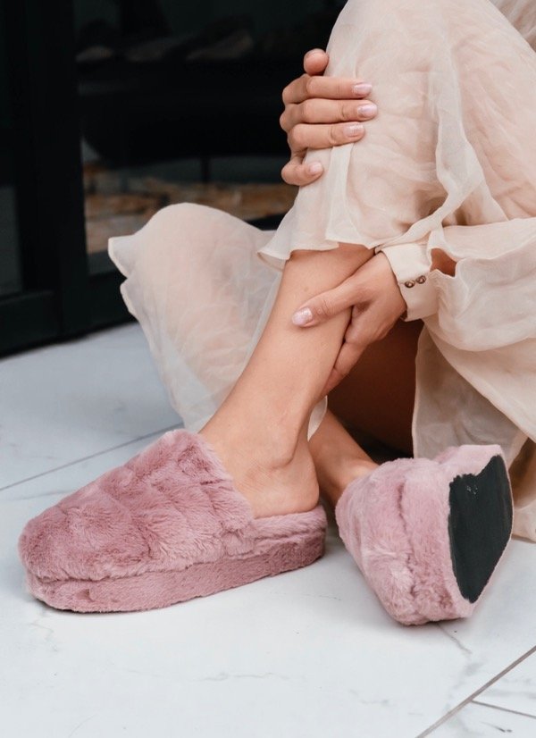 Pantuflas de peluche con suela tipo goma recta de 1 cm antideslizante, por dentro tienen espuma interna para que la pisada sea suave y acolchada.