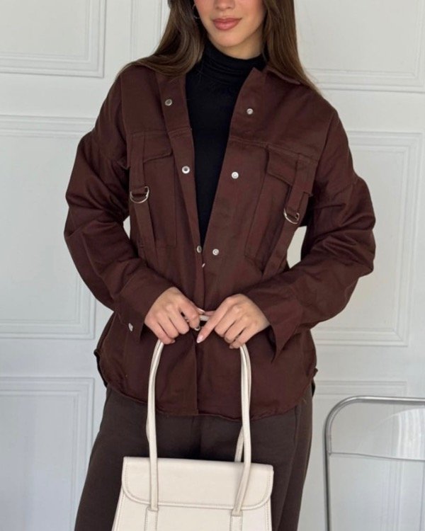 Camisaco de Jean (más gruesa que una camisa y más liviana que una campera) con bolsillos, botones tipo broche en toda la delantera y en el puño. Pinza en la espalda para mejor caída . Ideal para complementar tus outfits de día y noche!