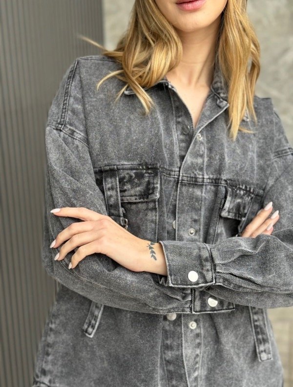 Camisaco de Jean (más gruesa que una camisa y más liviana que una campera) con bolsillos, botones tipo broche en toda la delantera y en el puño. Pinza en la espalda para mejor caída . Ideal para complementar tus outfits de día y noche!
